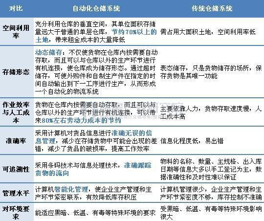 圖表2:自動化倉儲系統(tǒng)與傳統(tǒng)倉儲系統(tǒng)的比較