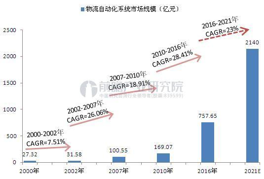 基于以下幾個方面,我們認為,物流倉儲自動化是整個自動化中增長最穩(wěn)定、成長空間最大的子板塊之一,預(yù)計在未來五年內(nèi),國內(nèi)物流倉儲自動化市場仍可維持20%以上的增長,到2021年有望成長至2000億元容量以上的大市場。