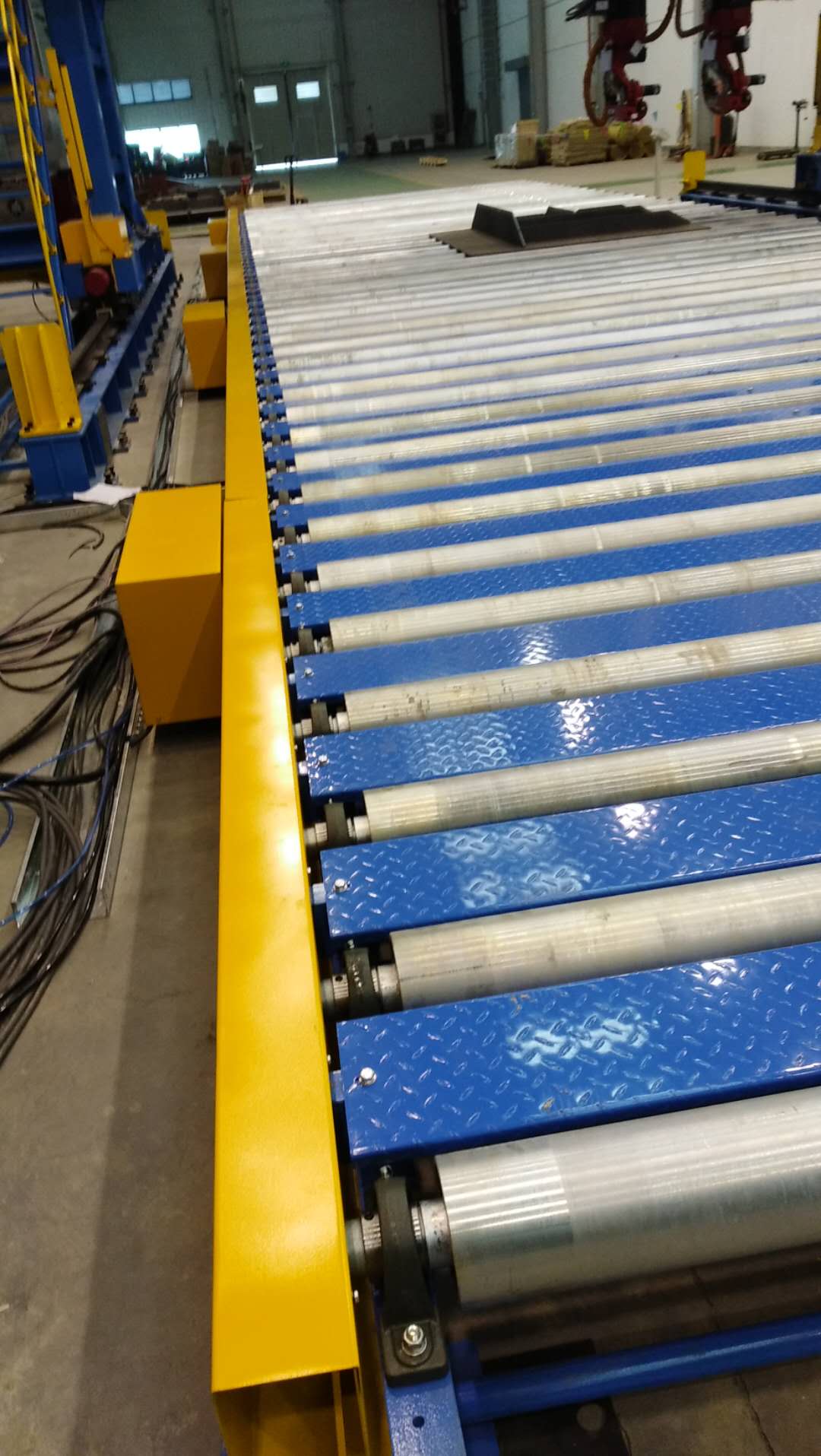 結(jié)構(gòu)形式:驅(qū)動方式可分為動力滾筒線和無動力滾筒線,布置形式分為水平輸送滾筒線、傾斜輸送滾筒線和轉(zhuǎn)彎滾筒線。還可按客戶要求特殊設(shè)計,以滿足各類客戶的要求。標(biāo)準(zhǔn)規(guī)滾筒線內(nèi)寬度為200、300, 400、500、1200mm等。轉(zhuǎn)彎滾筒線標(biāo)準(zhǔn)轉(zhuǎn)彎內(nèi)半徑為600、900、1200mm等。直段滾筒所用的滾筒直徑有38、50、60、76、89mm等。也可按客戶需求采用其它特殊規(guī)格。